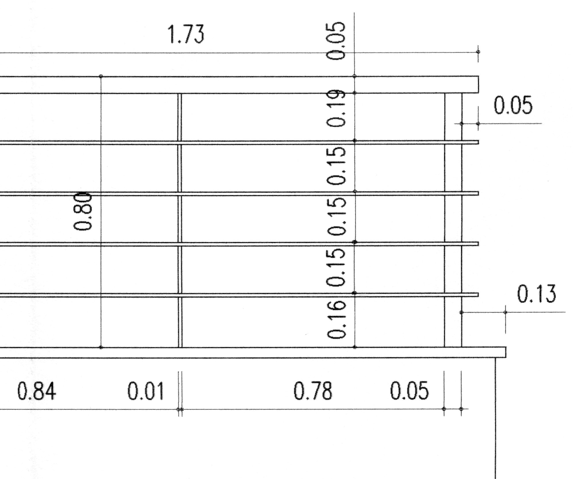 São desenhadas todas as guardas exteriores em pormenor, indicando as dimensões e materiais.