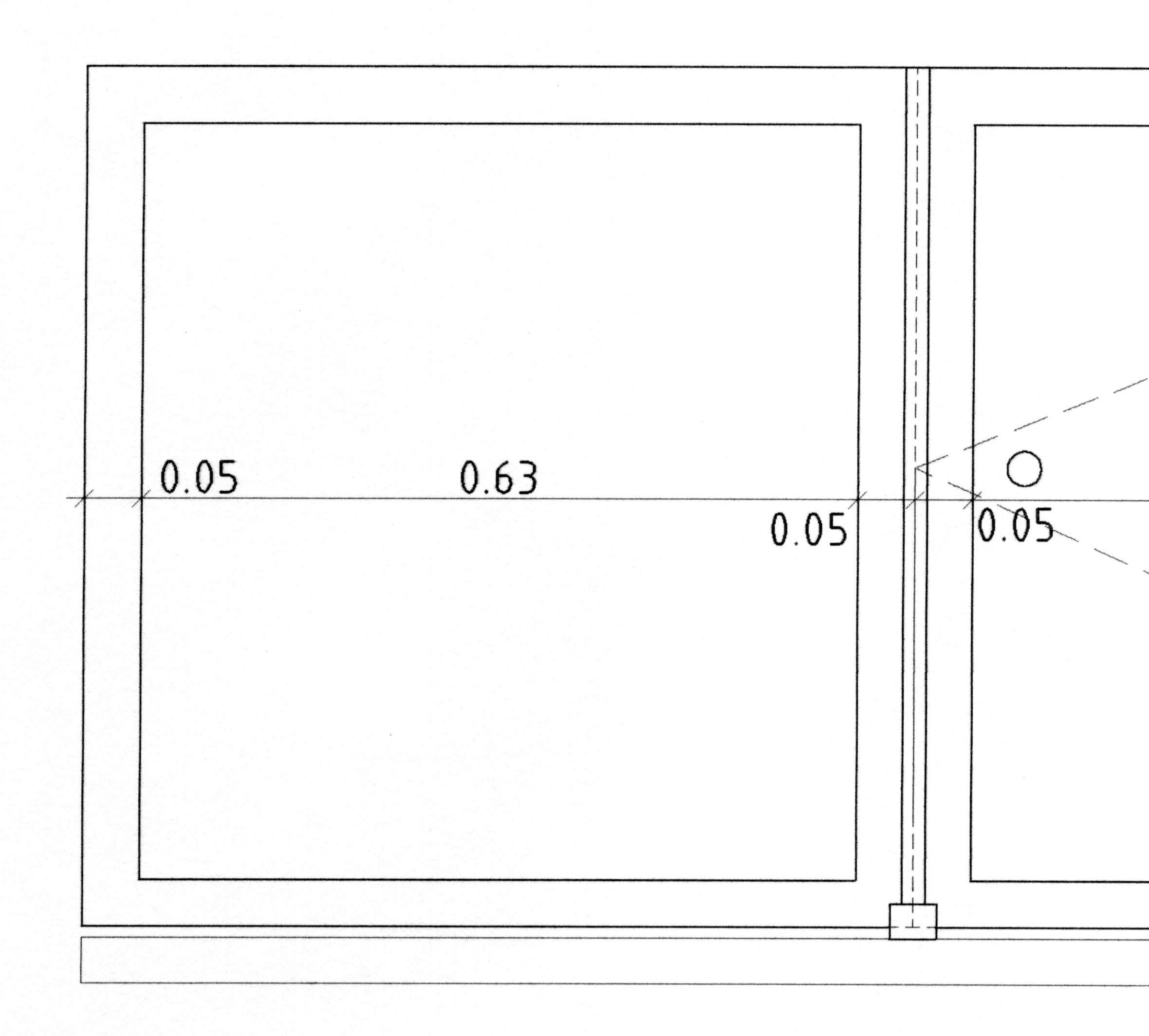 São desenhados todos os armários encastrados, pormenorizando a planta, corte e alçado, indicando o material, estereotomia, acabamento e dimensões exatas.