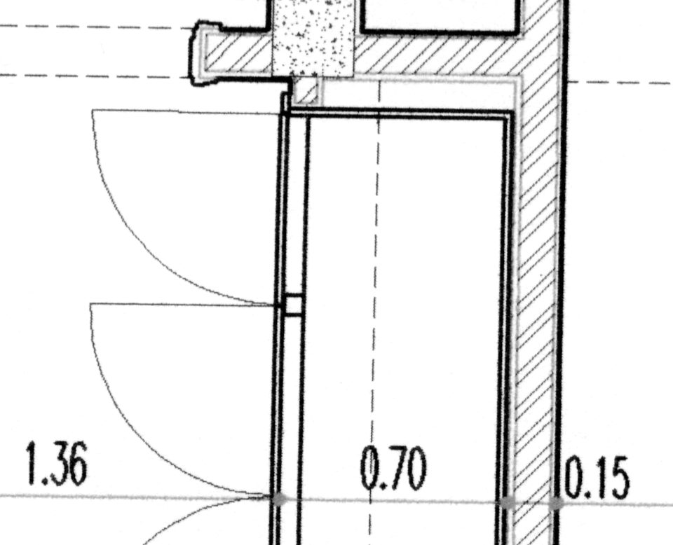 É desenhada a porta principal em pormenor assim como portas secundárias que não sejam em caixilharia, indicando dimensões, o tipo, materiais, estereotomias, cores etc. É ainda desenhada a soleira principal.