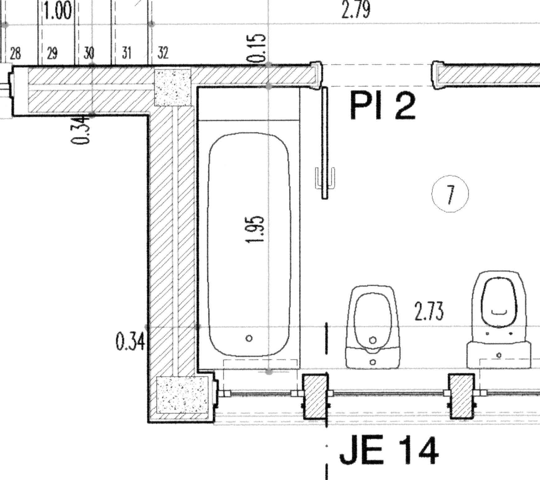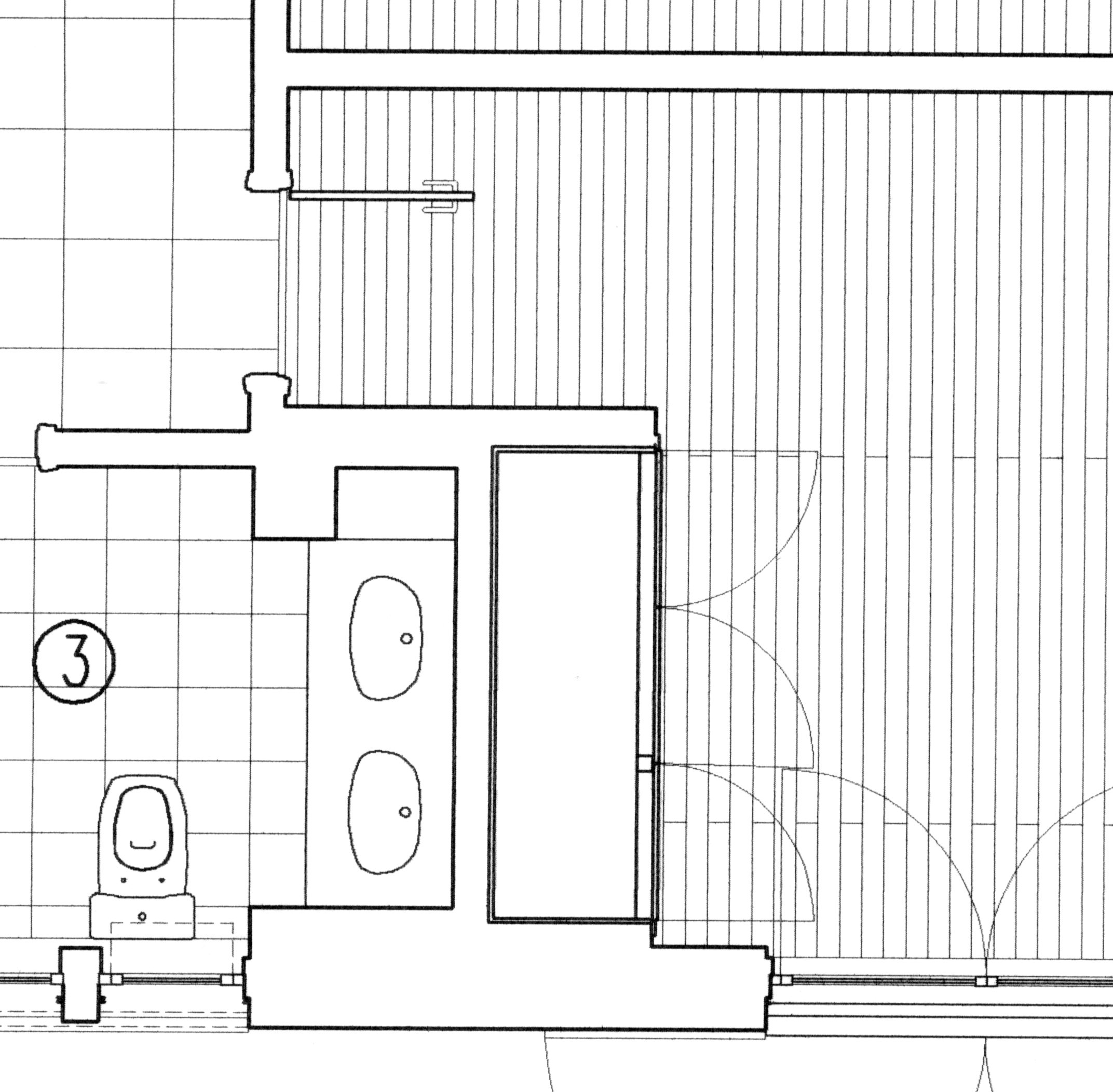 São desenhadas as plantas e alçados de todas as instalações sanitárias, definindo a estereotomia do chão, paredes e tetos. Está ainda associado pormenores construtivos para a execução da soleira da porta, do espelho, da bancada, etc.