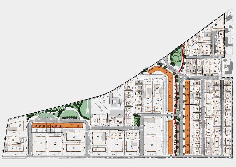 Estudo para a ampliação máxima da área de construção (8.662,75 m2) num terreno com a área de 21.900,00 m2, versus número de lugares de estacionamento (576), acessibilidades, enquadramento e cumprimento do índice de permeabilidade do solo. Casal do Marco - N10 - Seixal